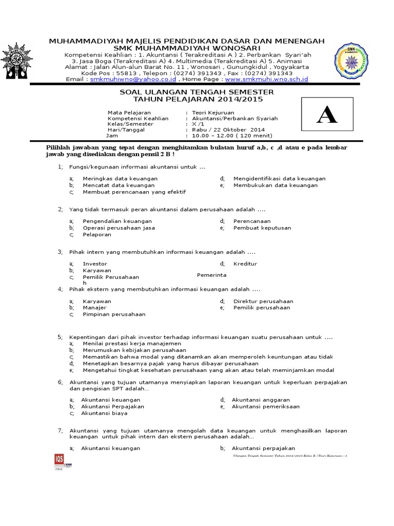 Soal Uts Akuntansi Dasar Kelas 10 Semester 2 : Materi Soal Dan Jawaban Uts Pengantar Akuntansi 2 Jawabanku Id / Melaksanakan program kegiatan osis dengan baik c.